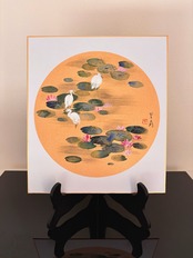 色紙 睡蓮に鷺